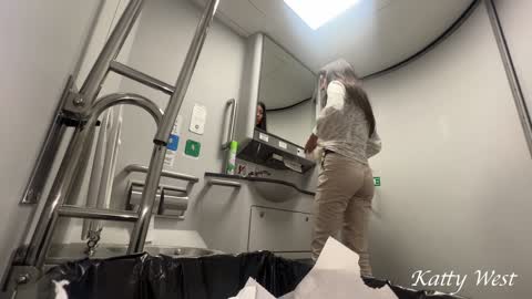 Extreme on the train. The young girl took off her panties and peed in public. Risky pissing